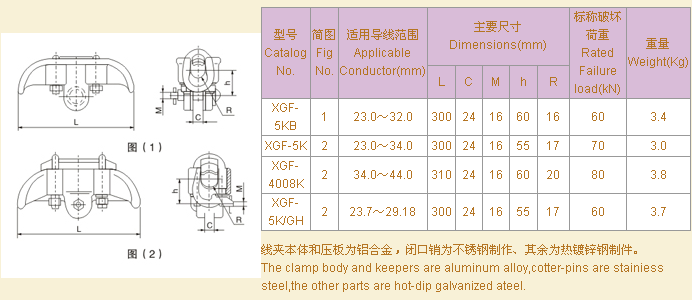 懸垂線夾(上扛式500kV線路用) Suspension Clamps for 500kV Line(Carried-up Type)