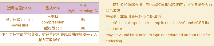 螺栓型耐張線夾的曲率半徑補小于被安裝導線直徑的8倍。耐張線夾導線的最小握力與導線計算拉斷力的百分比如下表: