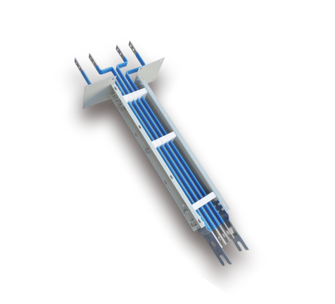 銅排使用符合國標(biāo)的T2電解銅,母線槽內(nèi)導(dǎo)體表面加裝熱縮套管(熱縮套管選用阻燃材,絕緣等級及耐熱等級達到B級;在-5~+40℃的環(huán)境溫度下,絕緣材料能保持其柔韌性和介電強度,不易老化),起到了加強絕緣和抗老化的作用。絕緣支撐架使用電氣纖維增強不飽和聚酯塑料塊隔開一定的電氣間隙,保證電氣絕緣性能,同時,母線槽絕緣支撐架具有足夠的強度,保證了動熱穩(wěn)定性。